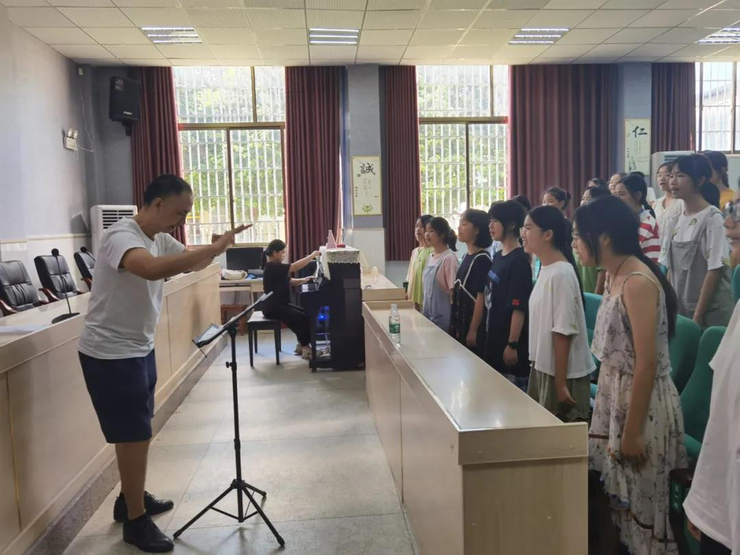 离正式比赛还有一个多月的时间,为了能在比赛中取得较好成绩,正值期末的我们开始了紧张的排练,从未松懈。上学期间,我们会利用吃完晚饭到晚自习的时间排练一个多小时;到暑假后,我们,每天都会排练三个半小时甚至更长的时间。说句心里话,莫说我了,合唱团里每个人也许都有那么一瞬间想过放弃,我们每天八点就要排练,和上学没什么两样,更难受的是排练时为了充分理解和运用气息发声和气息控制的方法,我们常常站着或者半蹲着排练,因为日常生活习惯不良,又常常又累又困又饿,还要坚持排练,有时候回到家也会向家长诉苦埋怨。(张慧依 1905班)