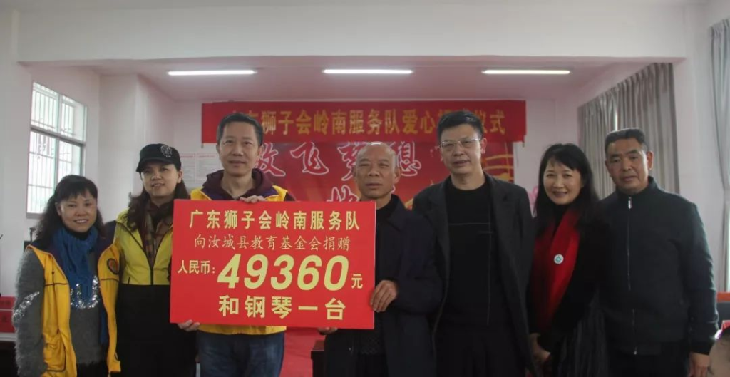 广东狮子会岭南服务队一行向汝城县集龙学校、土桥镇永丰中心小学、卢阳镇中心小学、汝城县一完小、热水中学五所学校捐赠价值49360元的乡村音乐教室所需的数字教学终端、合唱台等设施设备及向文明瑶族乡中心校捐赠杨浩文狮友个人钢琴一台。