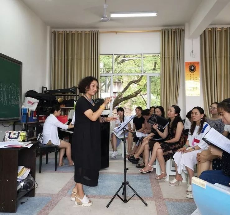 中小学学生合唱的推广离不开师资队伍的建设,为了提高教师业务素质,培养优秀的音乐教师团队,一支由我县45名中小学音乐老师组成的教师合唱团应运而生。