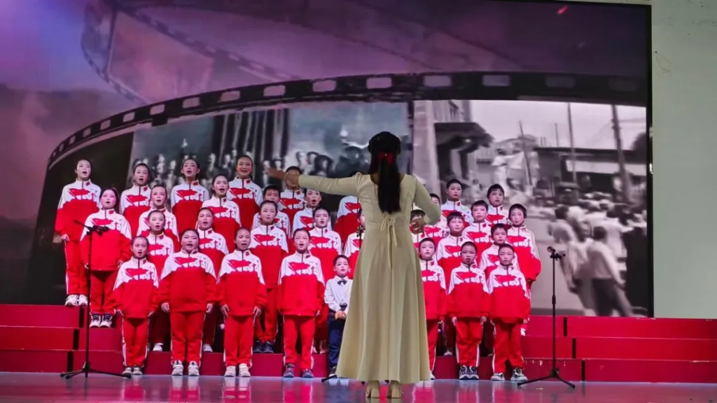 因为有了音乐课的基础,很多孩子报名参加了学校的合唱团,合唱对潘李骏来说,是表演的舞台,更是音乐成长过程中的重要部分。在每周一次的排练中,他会和同学们一起先在教室熟悉曲目,反复练习声部,直到每个细节都熟记于心。再和大家一起到学校的大礼堂进行站位排练,认真调整位置,确保表演整齐划一。“比起略显枯燥的排练,我更期待站上舞台的那一刻,当聚光灯照亮自己,听到台下观众的掌声,心中充满自豪和喜悦。”合唱团的经历让他体验到了歌唱的魅力,也让他体验了一把“校园小明星”的感觉,这份成就感让他更喜欢音乐,也愿意为下一次的舞台付出更多努力。