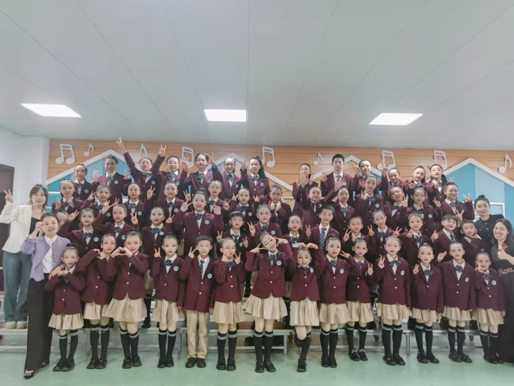 合唱团现有成员50名,由3-6年级的学生组成,团队坚持每周两次的常规训练,在专业音乐老师的悉心指导下,系统进行发声练习、音准训练和合唱技巧学习。从最基础的音乐启蒙到富有感染力的舞台表现,团员们在每一次排练中收获成长。