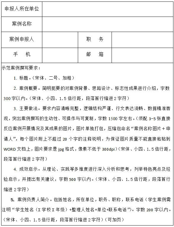 3.格式规范:标题:宋体、二号、加粗;正文:宋体、小四、1.5倍行距,段落首行缩进2字符;作者信息:注明“姓名+单位+职务+联系电话+电子邮箱”(学生案例需注明“学生姓名+XX学校X年级+协助整理人姓名+单位+联系电话”)。