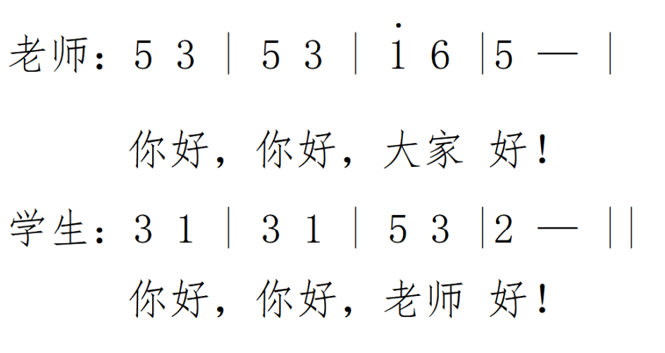 课前的师生问好歌采用本课所学歌曲旋律,不仅能营造音乐课堂学习氛围、使学生进入学习状态,还能使学生提前熟悉所学歌曲旋律、提高歌曲学习效率。