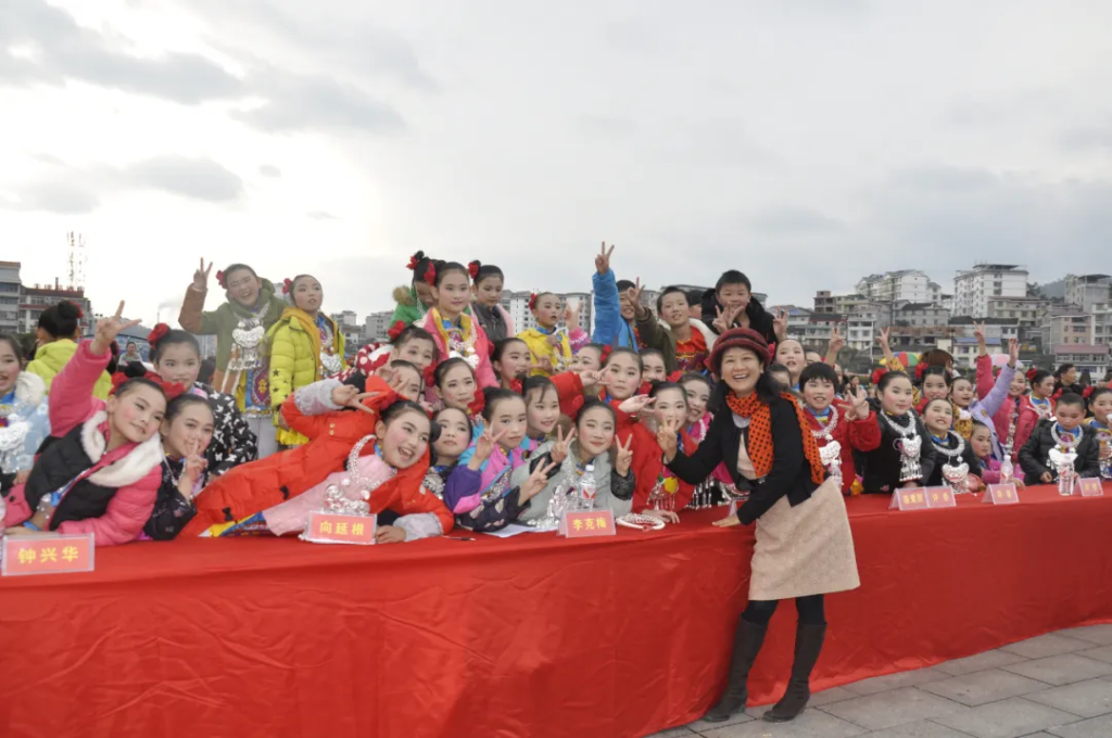 2016年11月30日,桑植“快乐合唱3+1”片区合唱比赛民歌广场赛区,李克梅与合唱团合影
