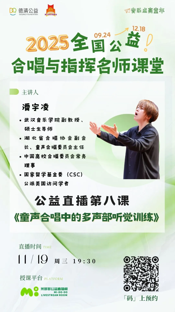 由北京德清公益基金会与湖北省合唱协会联合主办的《音乐点亮童年·2025全国公益合唱与指挥名师课堂》第八课即将开启!🎵