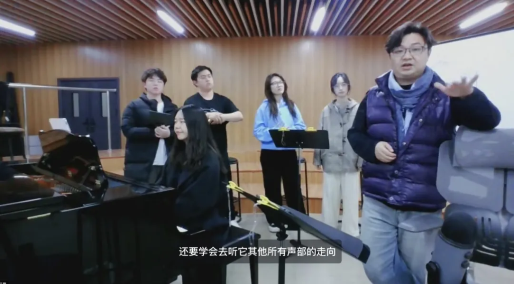 针对非专业学生普遍无音乐基础的学情特点,吴老师结合现场学生的真实反应,演示了排练中的两大核心能力: