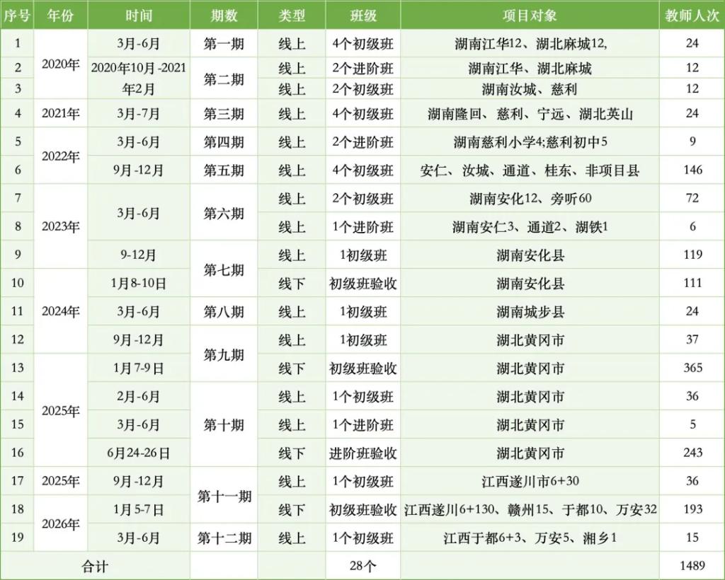 自 2018 年起,李斯特中心-匈牙利文化中心(北京)与北京德清公益基金会因公益结缘,以柯达伊教学法为纽带,携手深耕中国乡村音乐教育事业。八载同行,项目累计开展 23 期培训,惠及师生 5062 名:其中 7 期线下集训培育乡村师生 1790 名,11 期线上培训覆盖 3076 人,共开设 27 个线上班级(含 21 个初级班、6 个进阶班),并完成 4 次线下教学验收。一串串坚实数字的背后,既是匈牙利专家兰迪老师的倾心付出与无私奉献,更是中国乡村音乐教师勤学不辍、深耕课堂的执着身影。